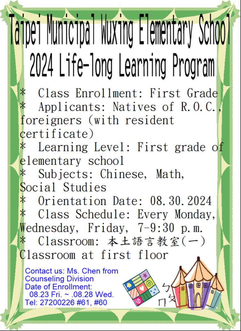 113學年度吳興國小夜補校招生資訊,相關說明詳見附件檔~