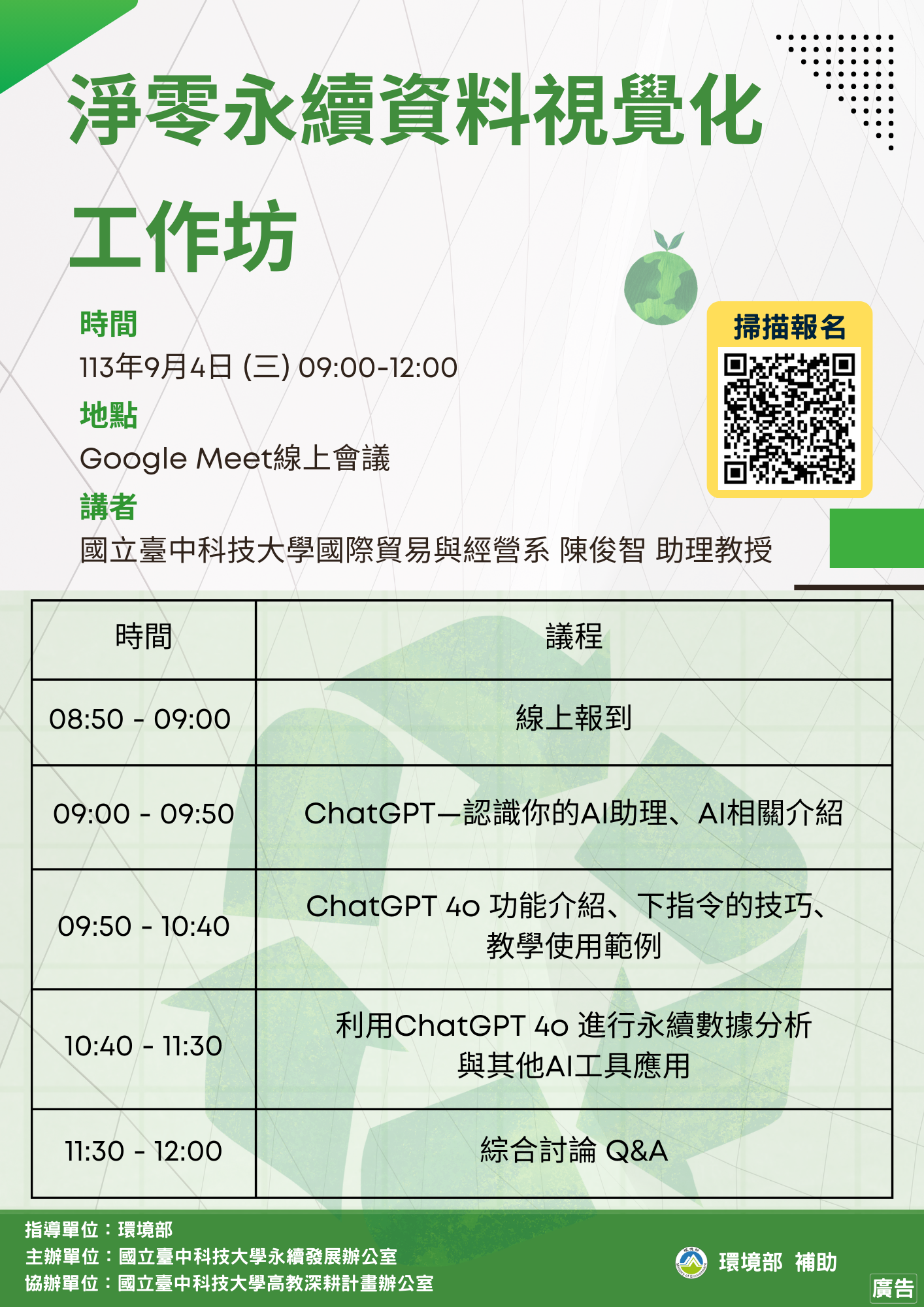 一、「淨零永續資料視覺化工作坊」相關活動訊息如下: