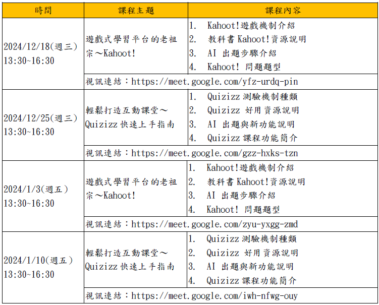 (一)研習對象:臺北市公立國小、國中及高中職教師。(每場次報名限制 100 人) (二)報名方式:請至臺北市教師研習網報名,即日起至各場次上課前截止。