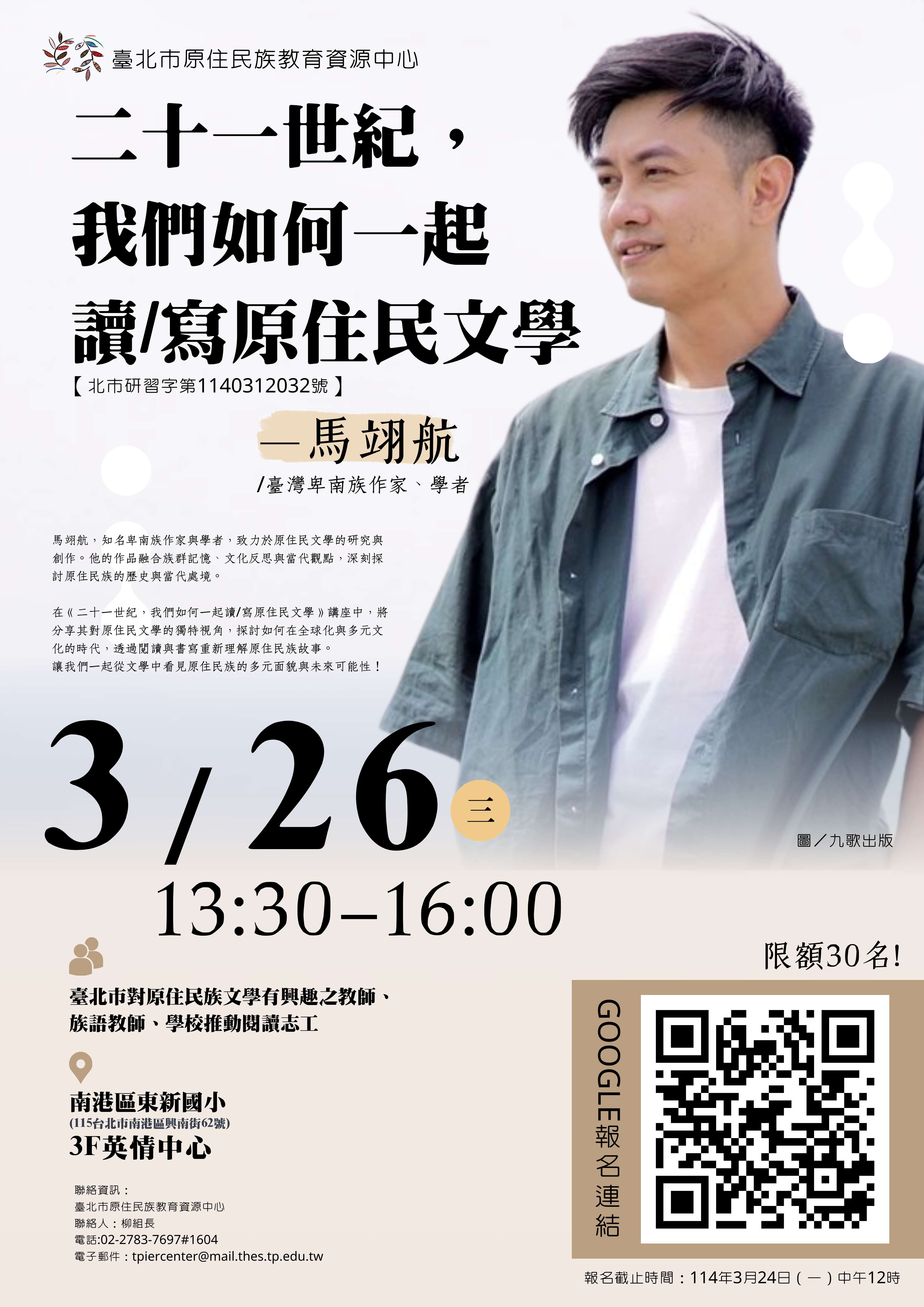轉知~原教中心「二十一世紀,我們如何一起讀寫原住民文學」原住民族文學推廣暨增能計畫