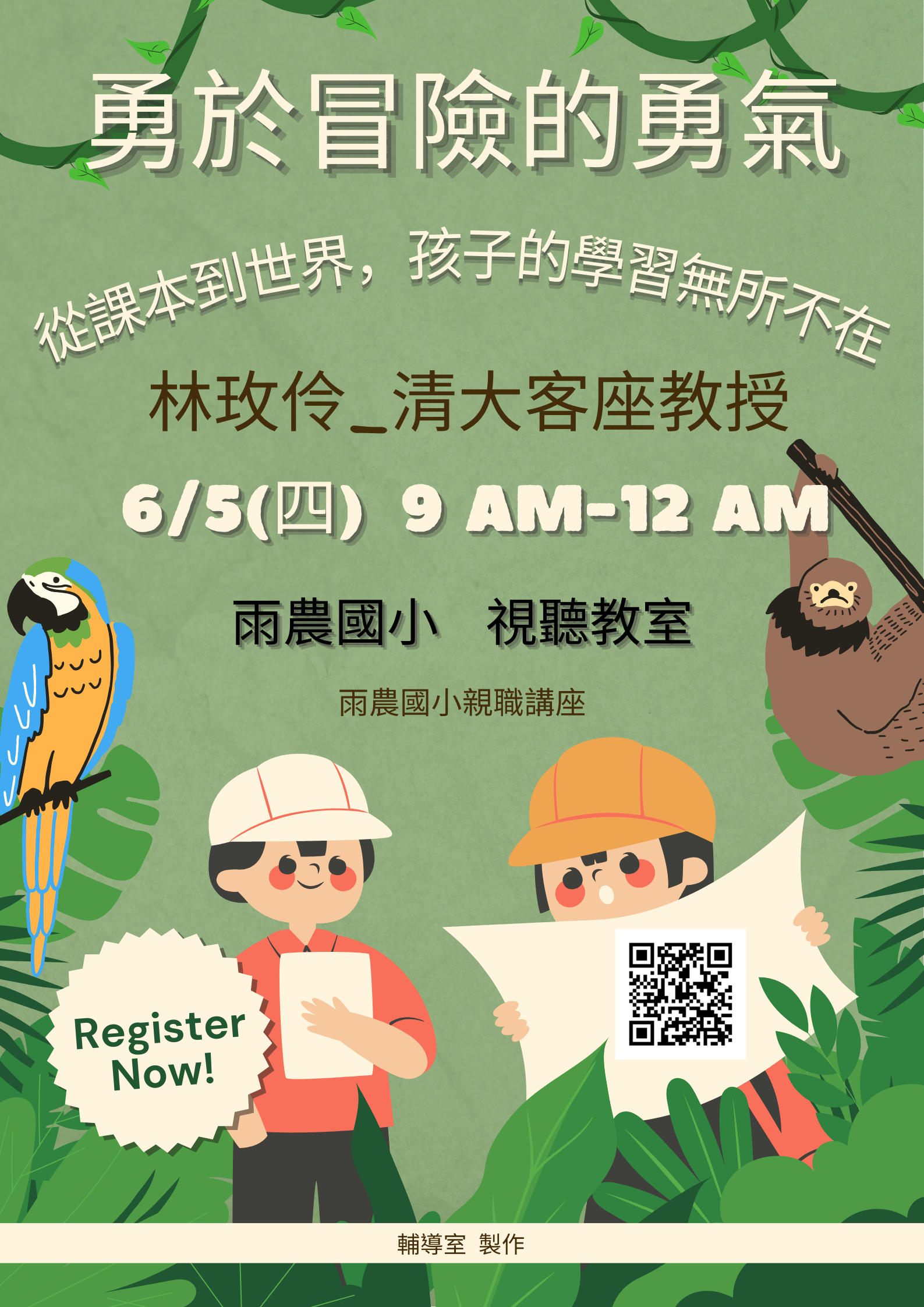 (三)講題:「勇於冒 險的勇氣:從課本到世界,孩子的學習 無所不在」。