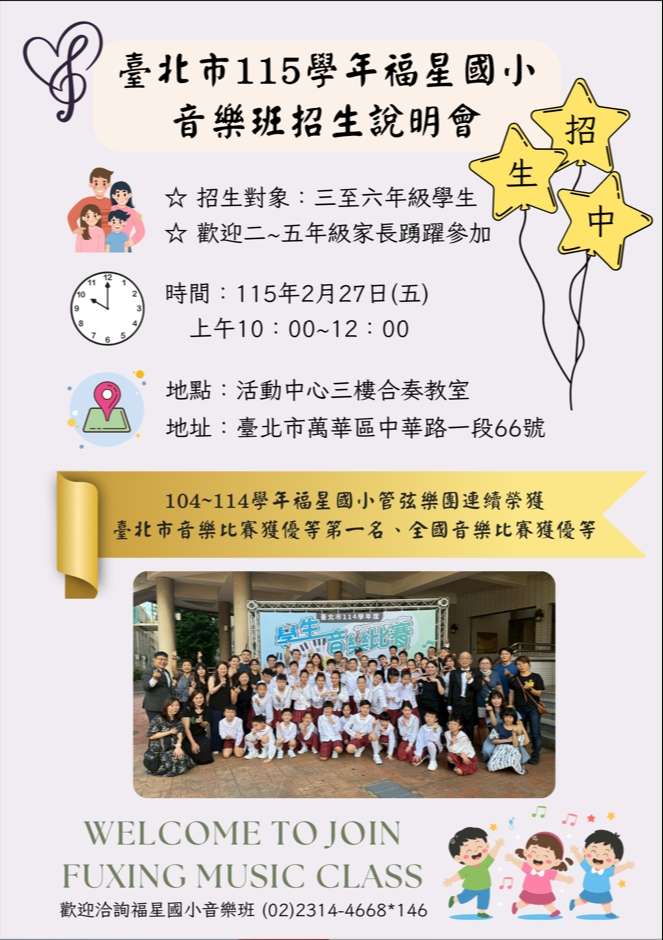 一、依據臺北市萬華區福星國民小學115年2月23日北市福國輔字第1156001103號函辦理。