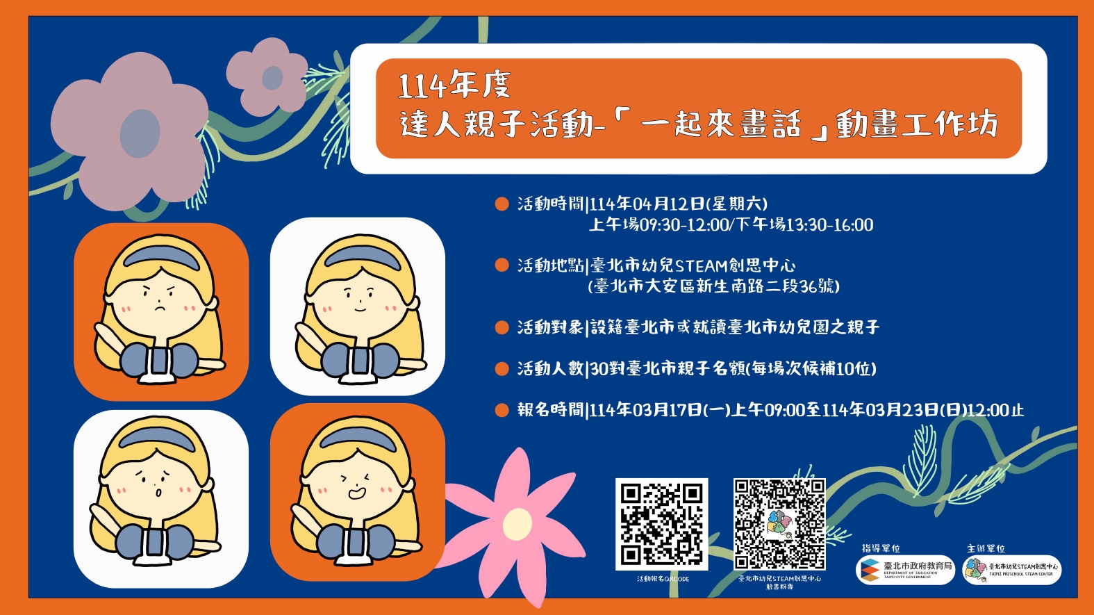 114年度臺北市幼兒STEAM創思中心「聲光好好玩 : 一起來畫話-幼兒親子動畫工作坊」