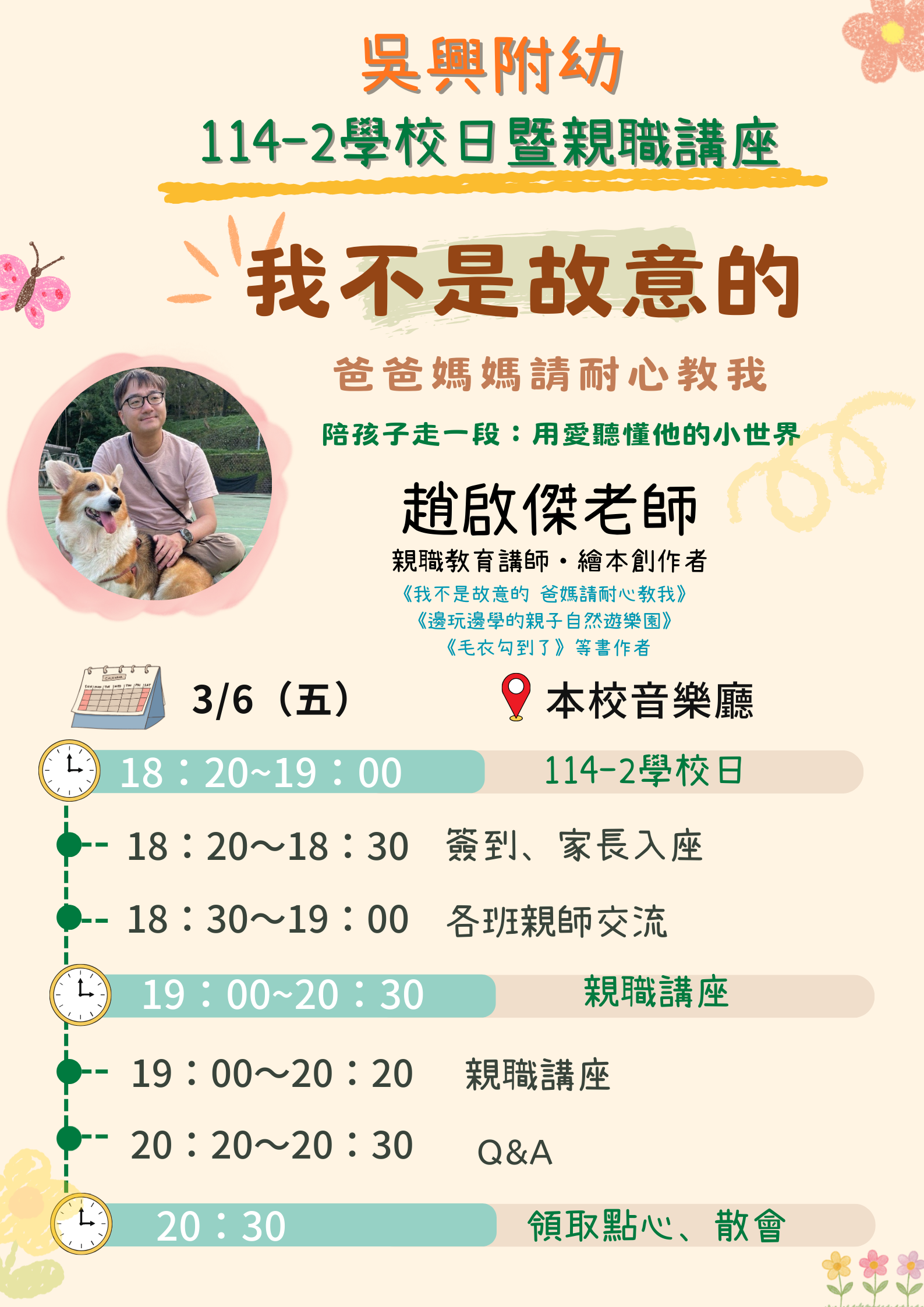 本園將舉辦【114-2 學校日暨親職講座】✨